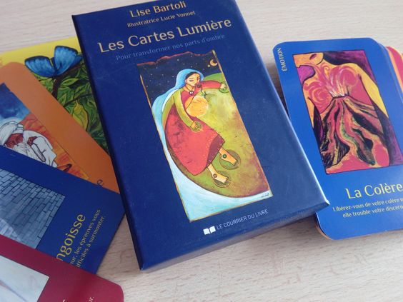 Ce processus du tirage des cartes Lumière est à la fois ludique et très puissant. Il permet de transformer nos parts d’ombre en Lumière, en ressources positives par un tirage de cartes psychologiquesLes cartes Lumière de Lise Bartoli.